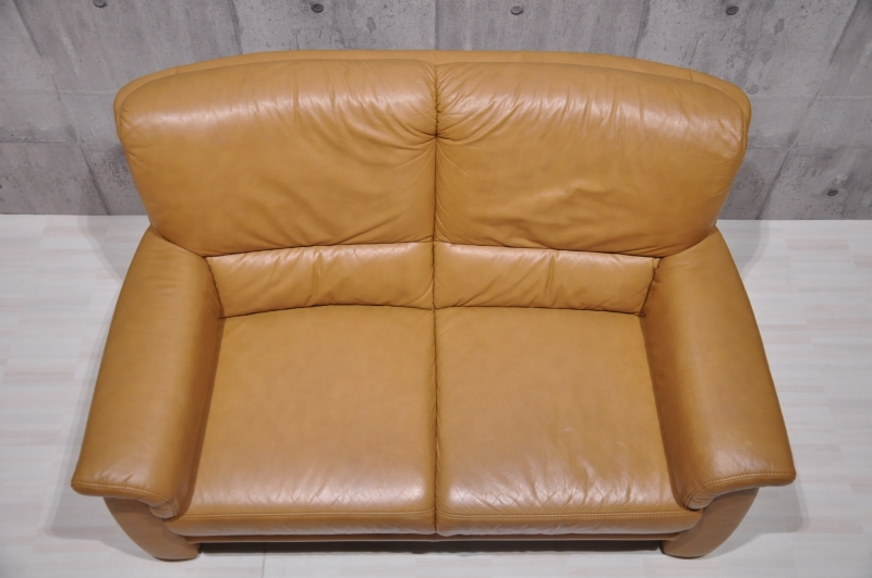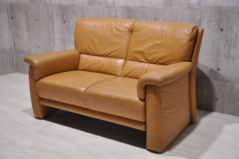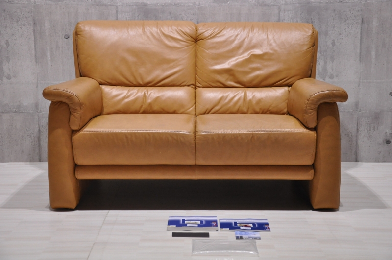 美品 IDC大塚家具 himolla ヒモラ ベルク 総革張り 2人掛けソファ ドイツ製 ラブソファです。