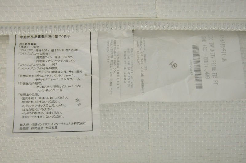 最高級 IDC大塚家具 KINGSDOWN キングスダウン インフィニティ プライム クイーンサイズ クイーンベッド 100万 ダブルクッションです。