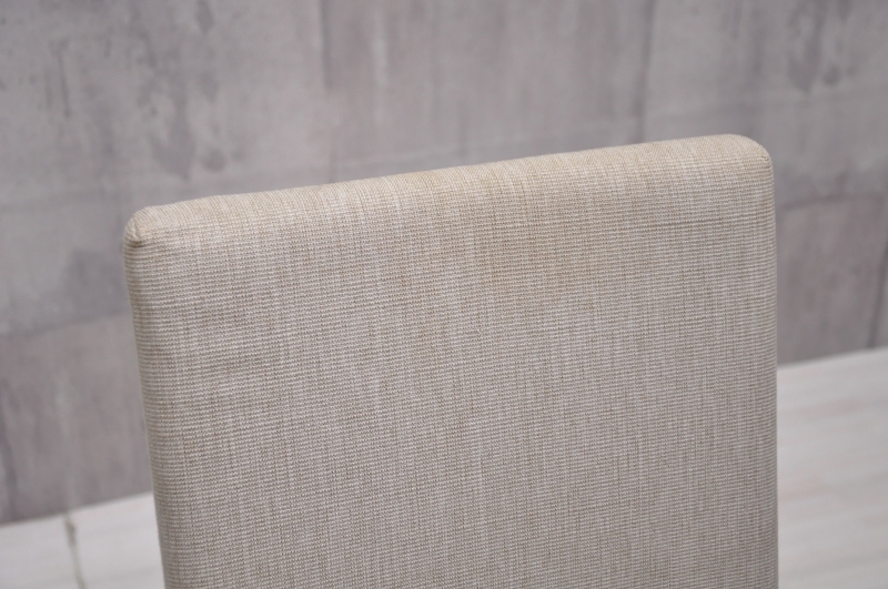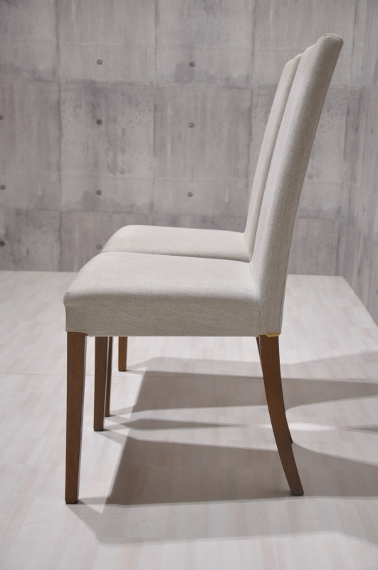 わずかに湾曲した背のラインが座り心地を快適にするハイバックのクラシックチェア。複数脚を並べた際に美しく連続して見える角度でつくられています。ファッショナブルな雰囲気をまとったファブリックが、シンプルなフォルムに個性を加えます。