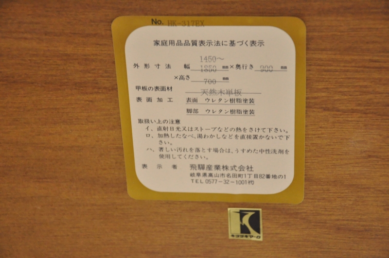 飛騨産業 キツツキ 伸長式 145-185cm ダイニングテーブル 穂高シリーズ HK-317EX エクステンションテーブルです。