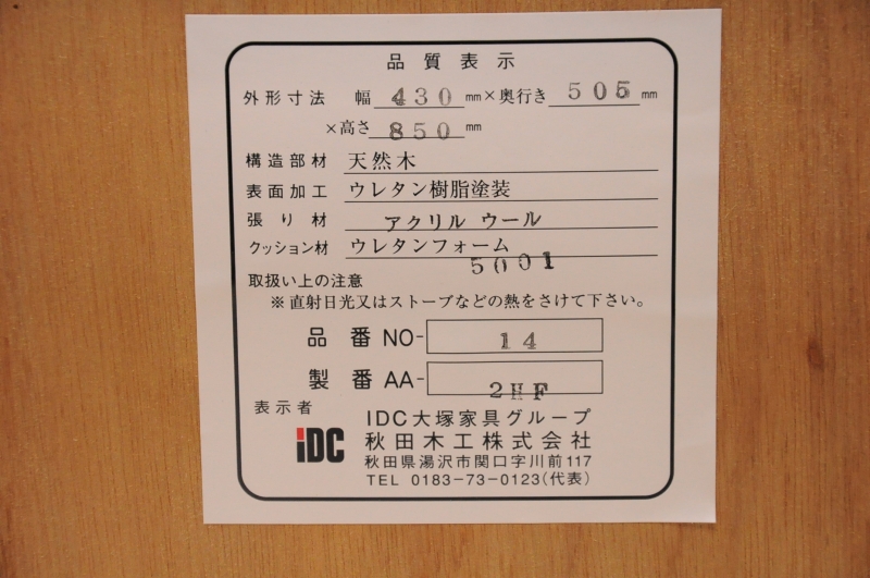IDC大塚家具 Akimoku 秋田木工 No.14 曲木 ダイニングチェア ブナ材 2脚セットです。◇サイズ幅42cm × 奥行き50.5cm × 高さ84cm 座面の高さ45.5cm※素人採寸の為、多少の誤差はお許しください。◇状態座面にシミがあります。画像にてご確認ください。