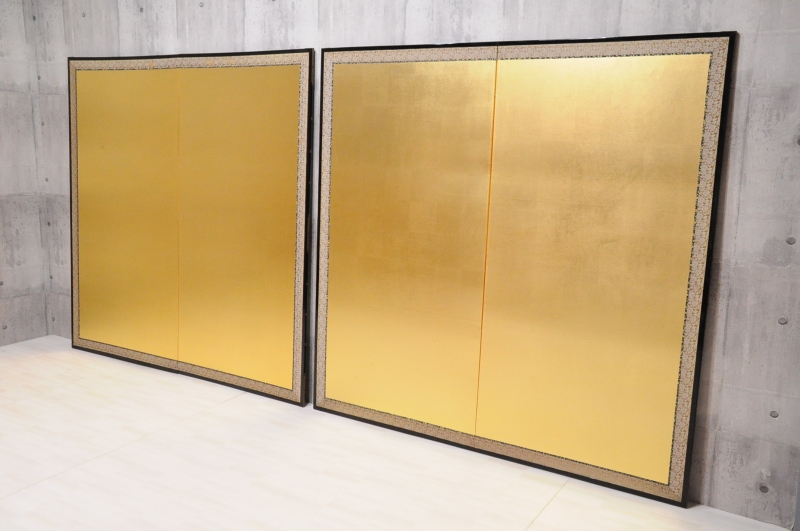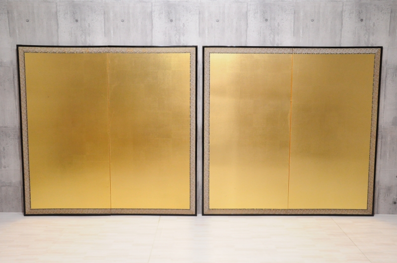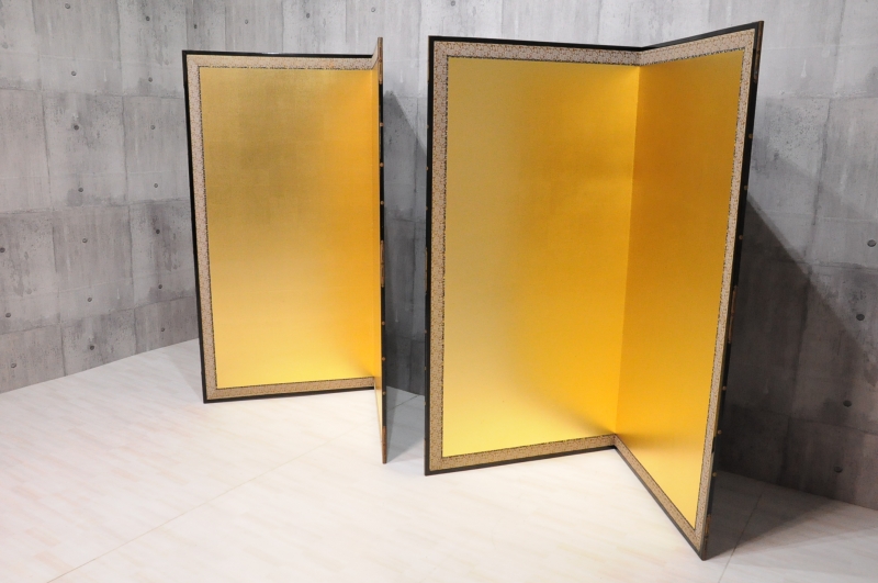 金屏風 二曲一双 無地 高さ175cm 2枚折り パーテーションです。◇サイズ幅180cm × 奥行き2cm × 高さ175cm折りたたみ時:幅90cm × 奥行き4cm × 高さ175cm※素人採寸の為、多少の誤差はお許しください。◇状態多少のシミ、汚れや傷などあります。画像にてご確認ください。