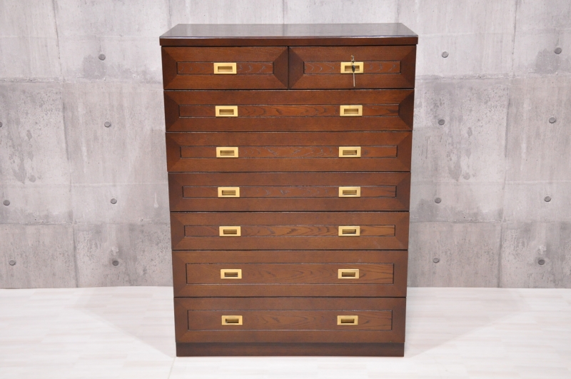 美品 府中家具 鍵付き 7段 8杯 ハイチェスト 整理箪笥です。◇サイズ幅85cm × 奥行き45cm × 高さ118.5cm※素人採寸の為、多少の誤差はお許しください。◇状態多少の使用感、小傷はあるものの全体的には美品レベルかと思います。画像にてご確認ください。