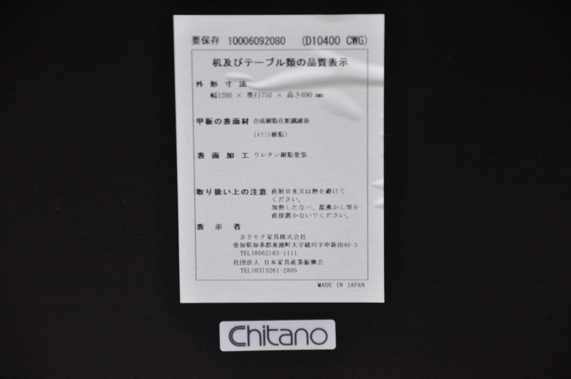karimoku カリモク chitano チターノ ダイニングテーブル D10400 CWGです。◇サイズ幅120cm × 奥行き75cm × 高さ69cm※素人採寸の為、多少の誤差はお許しください。◇状態脚に傷が複数箇所あります。天板側面に僅かな傷があります。画像にてご確認ください。