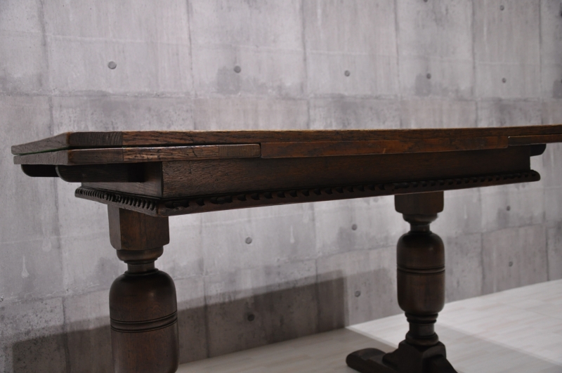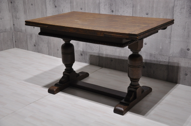 英国 イギリス アンティーク バルボスレッグ ドローリーフテーブル オーク材 無垢です。◇サイズ幅122cm × 奥行き76cm × 高さ76cm伸長時:幅182cm × 奥行き76cm × 高さ76cm※素人採寸の為、多少の誤差はお許しください。◇状態全体的に使用感はありますが、アンティーク家具と考えれば美品なレベルかと思います。画像にてご確認ください。
