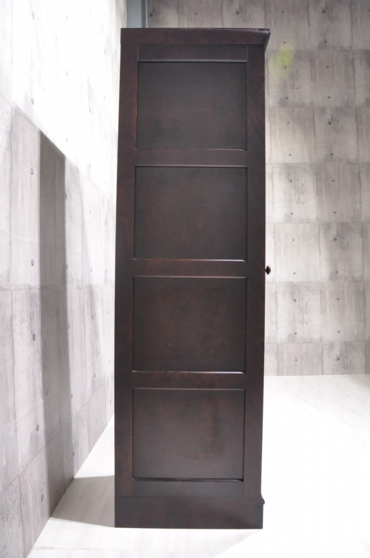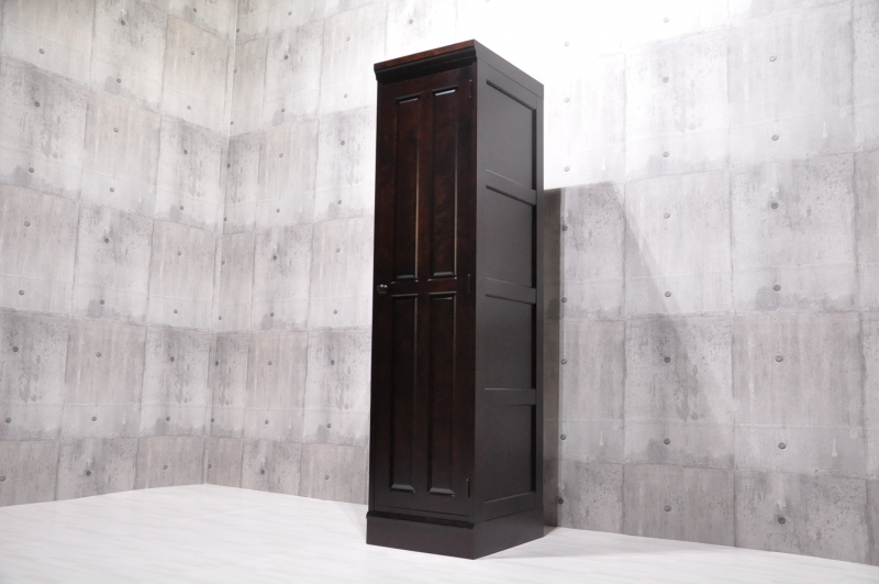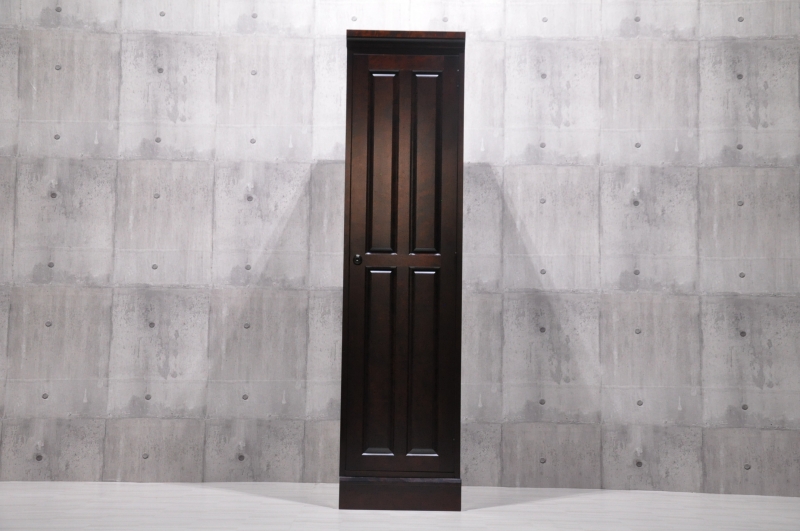 北海道民芸家具 ワードローブ スリムタイプ 洋服箪笥 ロッカータンス です。棚が多数ありますので、収納棚としてもお使いできます。洋服を掛ける際は棚を外してお使いできます。◇サイズ幅49cm × 奥行き59cm × 高さ195cm※素人採寸の為、多少の誤差はお許しください。◇状態正面、側面、ドアを開けた内側に傷があります。他にも目立たない程度の傷が複数あります。画像にてご確認ください。