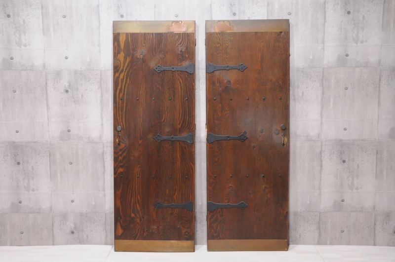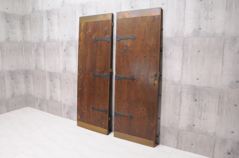 民芸家具 調 木製 ドア 無垢材 古民家 古民具 片開き2枚セット 両開き 観音開き 開き戸 扉です。