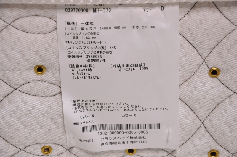 FRANCEBED フランスベッド ダブルサイズ マットレス 美品です。