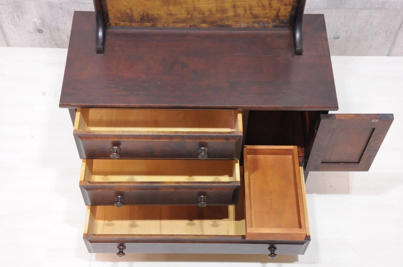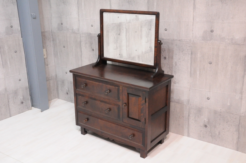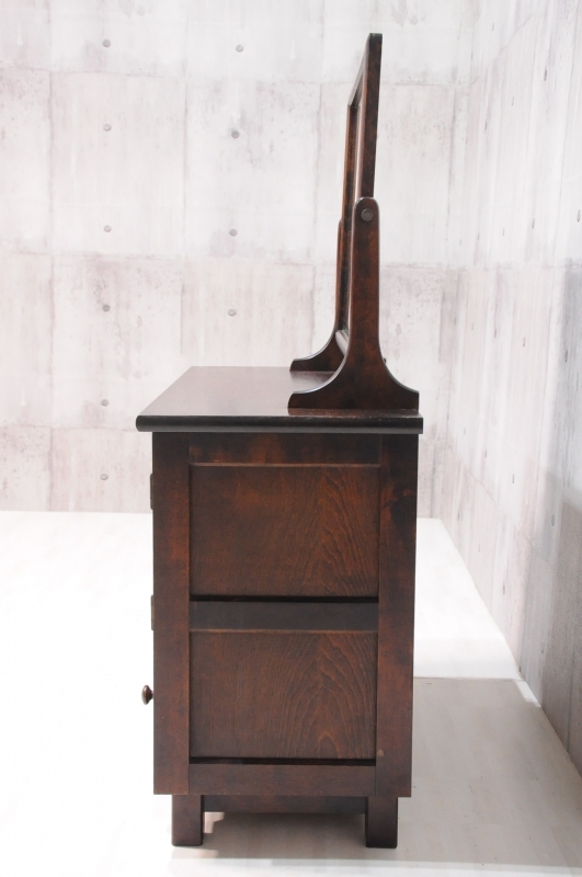 北海道民芸家具 ドレッサー 樺材 無垢 化粧台 チェストです。◇サイズ幅91cm × 奥行き42.5cm × 高さ126.2cm 天板高70cm※素人採寸の為、多少の誤差はお許しください。◇状態全体的に使用感、スレや傷があります。画像にてご確認ください。