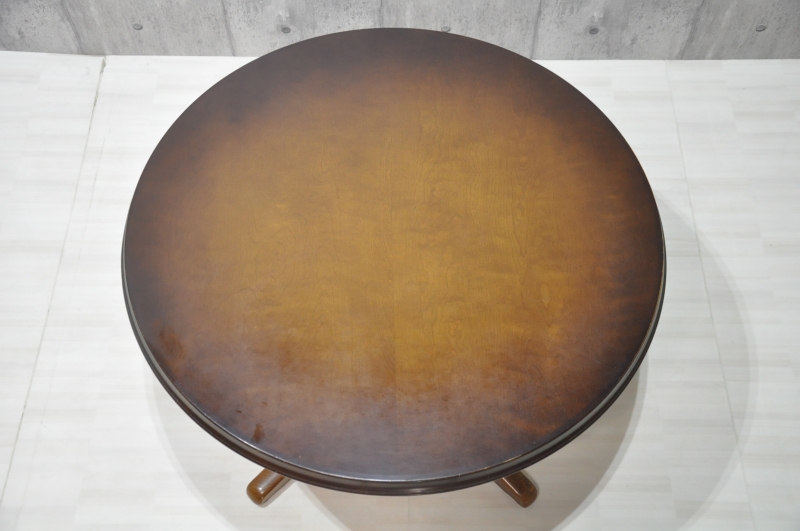 飛騨産業 キツツキ 穂高シリーズ 105cm 円卓 ダイニングテーブル トリコロールタグ 食卓テーブルです。◇サイズ幅105cm × 奥行き105cm × 高さ70.5cm※素人採寸の為、多少の誤差はお許しください。◇状態全体的に使用感、傷があります。天板にスレや傷、色褪せがあります。画像にてご確認ください。