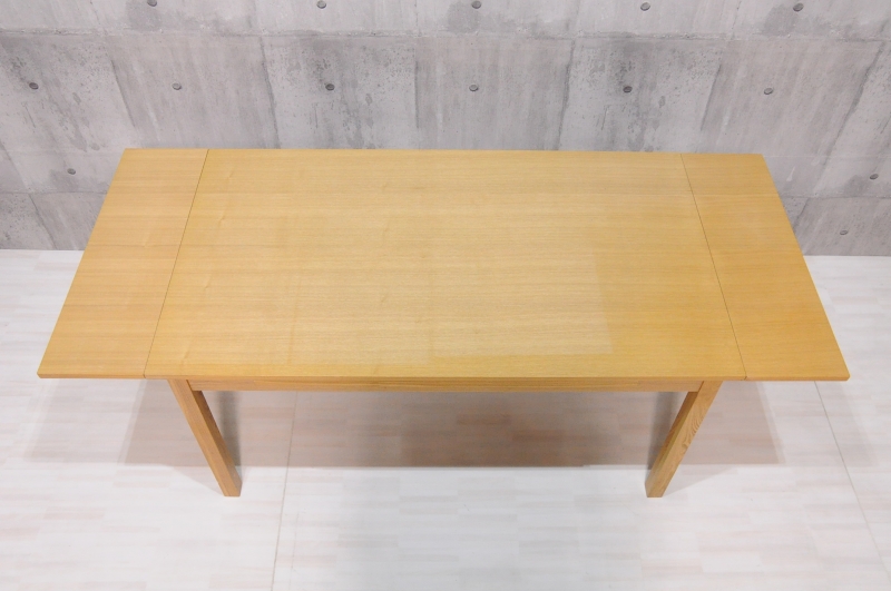 MUJI 無印良品 140-190 エクステンションテーブル ダイニングテーブル オークです。◇サイズ幅140-190cm × 奥行き80cm × 高さ72cm ※素人採寸の為、多少の誤差はお許しください。◇状態全体的に多少の使用感、小傷があります。天板にヤケがあります。画像にてご確認ください。