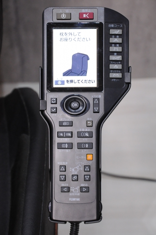動作中のマッサージの種類、マッサージ中の部位、各部位の強弱動作がひとめでわかるフルカラー液晶リモコンを採用しました。