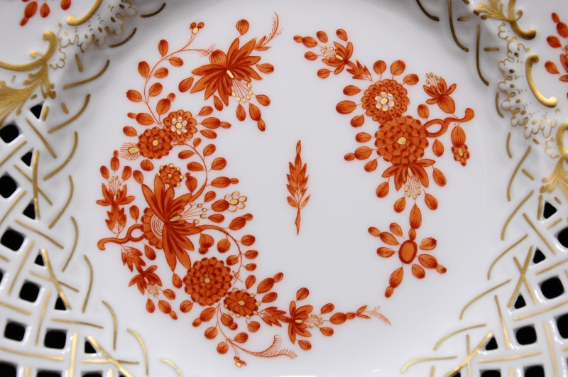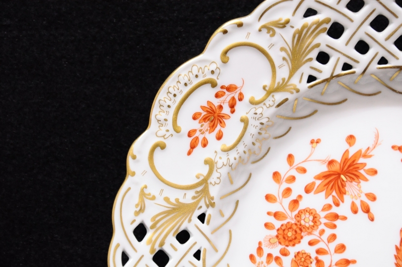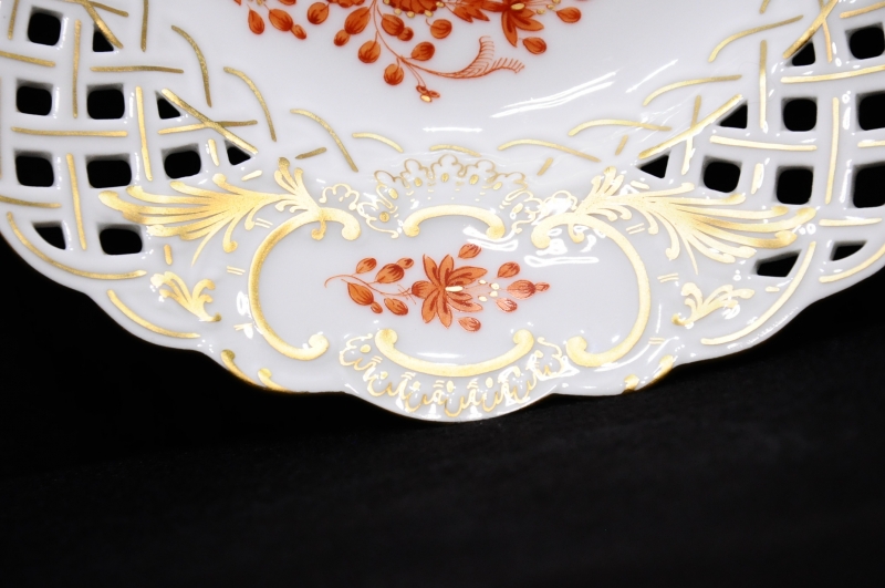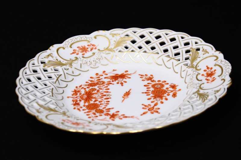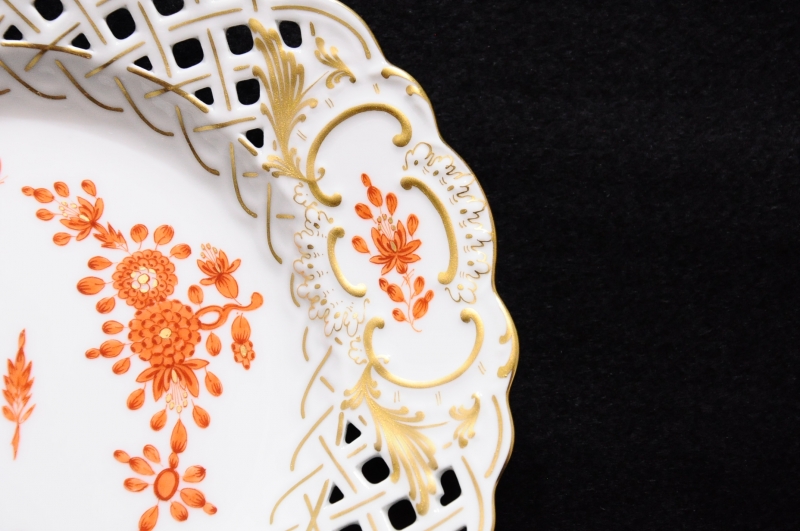 美品 マイセン インドの華 18.5cm 透かし プレート オレンジ 本物保証です。 ◇サイズ幅18.5cm × 奥行き18.5cm × 高さ2.8cm※素人採寸の為、多少の誤差はお許しください。◇状態飾り棚の中に観賞用として置かれていた物です。気になる傷などは見当たらず美品です。画像にてご確認ください。