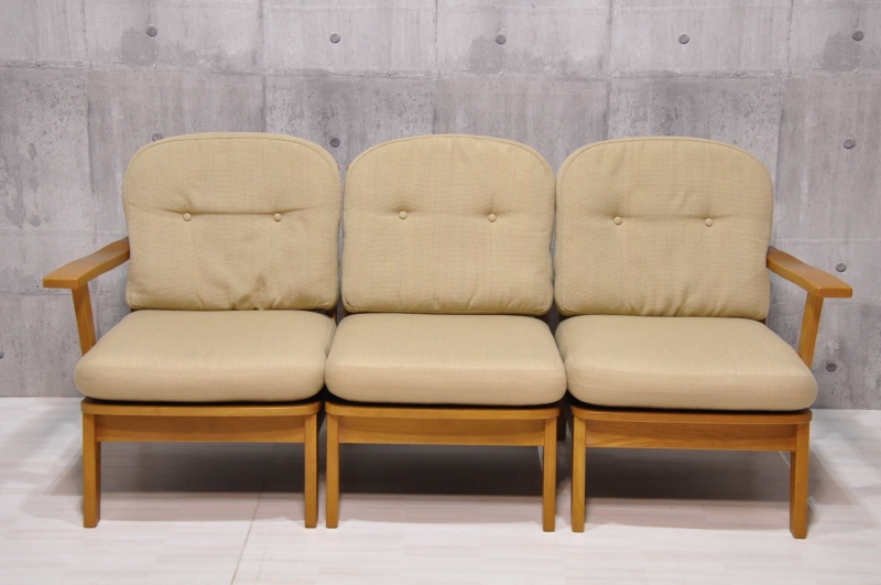 美品 飛騨産業 キツツキ セパレート式 3人掛けソファ トリプルソファ オーク材 無垢です。◇サイズ幅177cm × 奥行き78.5cm × 高さ80cm 座面の高さ40.5cm肩肘付き:幅57cm × 奥行き78.5cm × 高さ80cmアーム無し:幅63cm × 奥行き78.5cm × 高さ80cm※素人採寸の為、多少の誤差はお許しください。◇状態全体的に多少の使用感、傷があります。フレーム同士の干渉傷があります。背面上部に傷、カケがあります。画像にてご確認ください。