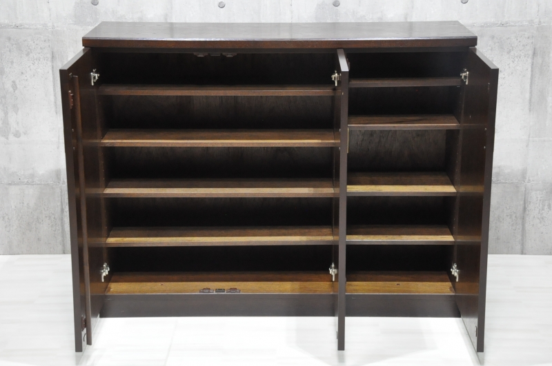 美品 府中家具 128cm シューズボックス 下駄箱 3面開き 可動棚です。◇サイズ幅128cm × 奥行き40cm × 高さ99.5cm※素人採寸の為、多少の誤差はお許しください。◇状態全体的に多少の使用感、小傷があります。画像にてご確認ください。