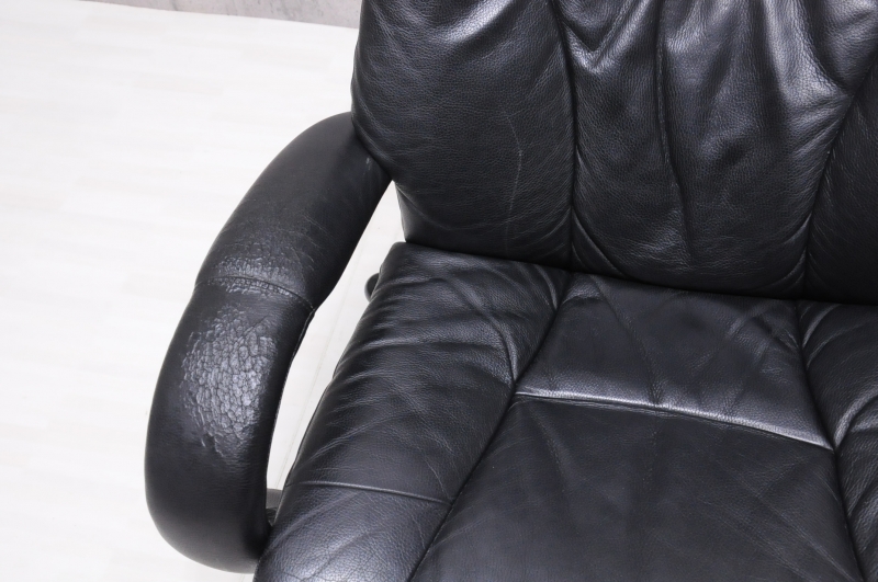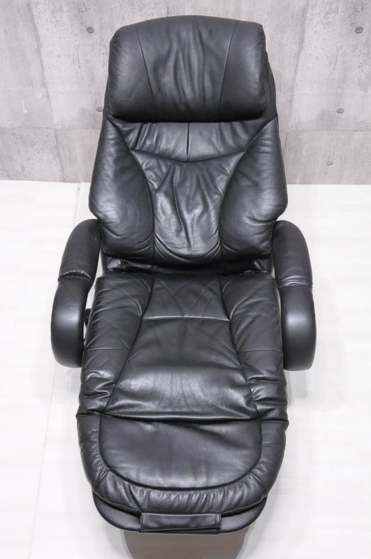 karimoku カリモク 本革 パーソナルチェア リクライニングチェア ブラック リクライニングソファです。型番:RT8500BB◇サイズ幅79cm × 奥行き83cm × 高さ113cm 座面の高さ46cmリクライニング時:幅79cm × 奥行き151cm × 高さ93cm ※素人採寸の為、多少の誤差はお許しください。◇状態全体的に使用感、スレや傷があります。右アームに革の劣化があります。画像にてご確認ください。