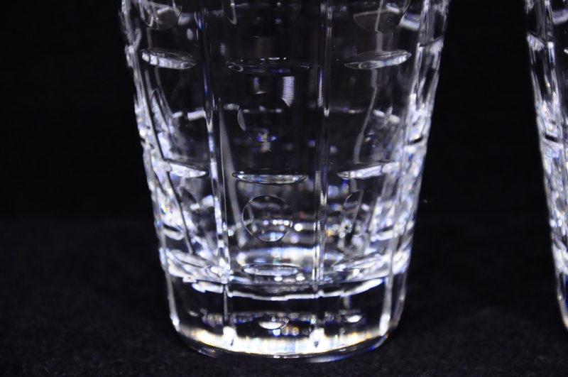 バカラのエキノックスのロックグラス、タンブラーです。丸と線状のカットが組み合わさったデザインのグラスです。エキノックスとはフランス語で「昼と夜の長さが同じ」という意味を持ちますので、日本風に言うと、春分の日や秋分の日という意味合いになるでしょう。