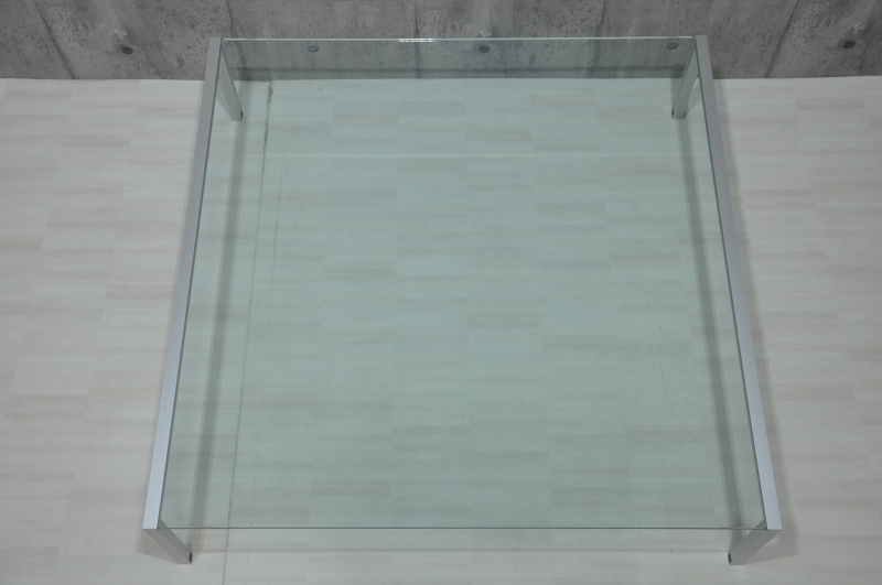 Cassina IXC カッシーナイクスシー ルームリビング コーヒーテーブル Team by Wellis チーム バイ ウェリス ガラステーブルです。デザイナー:Kurt Erni (クルト・エルニ)参考税込価格:23万◇サイズ幅120cm × 奥行き120cm × 高さ30cm※素人採寸の為、多少の誤差はお許しください。◇状態天板に画像では分かりづらい使用に伴う傷があります。アルミ部分にも傷があります。画像にてご確認ください。
