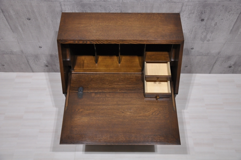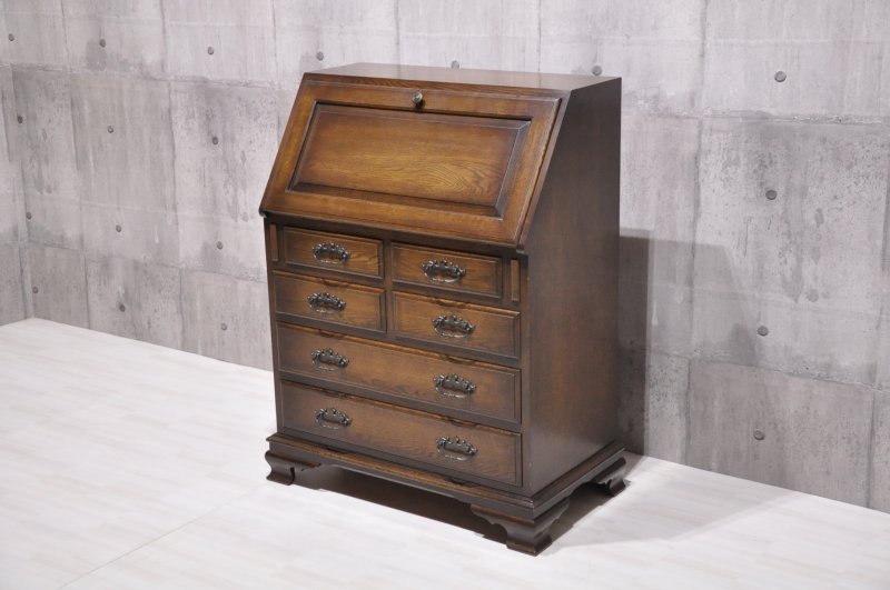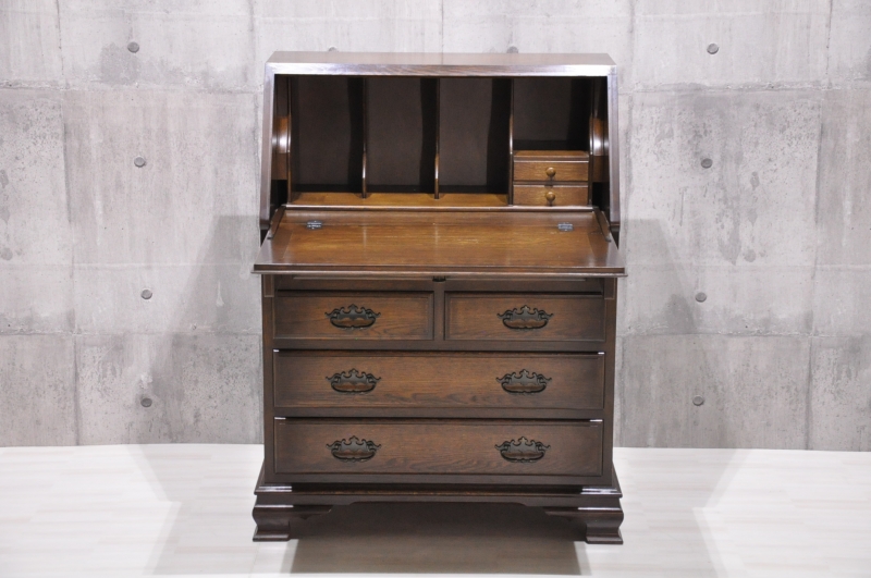 横浜クラシック家具 戸山家具製 Knock on wood ノックオンウッド HAND MADE ライティングビューローです。◇サイズ幅83cm × 奥行き45cm × 高さ105cmデスク時:幅83cm × 奥行き78cm × デスク高72cm※素人採寸の為、多少の誤差はお許しください。◇状態全体的に使用感、傷があります。天板、デスク面に目立つ傷、引き出し内に汚れがあります。画像にてご確認ください。
