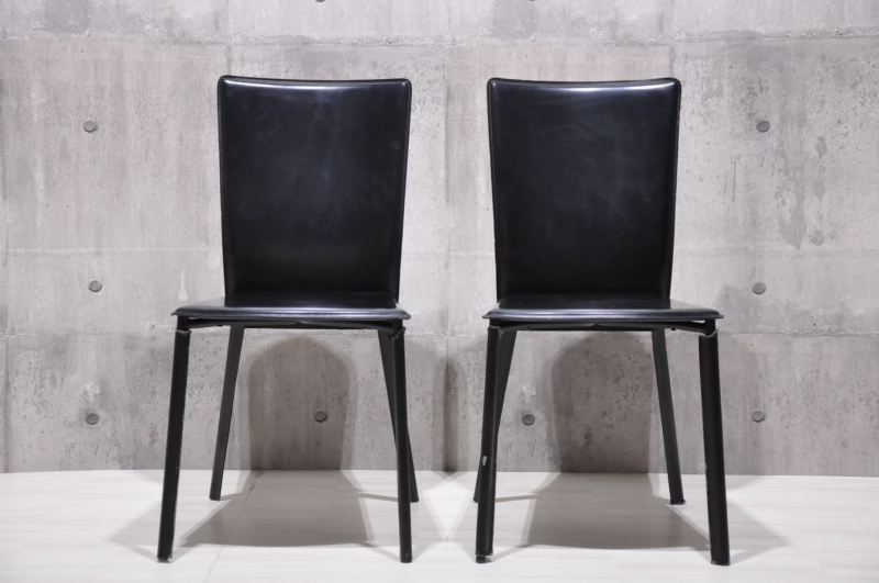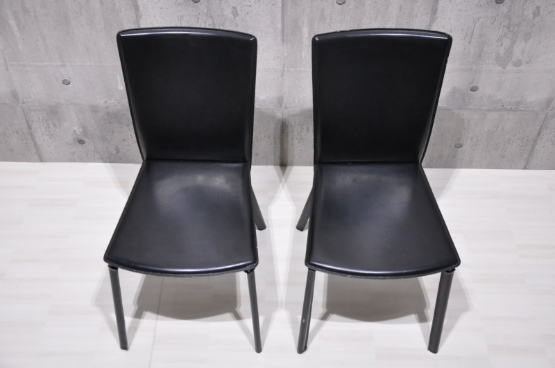 Calligaris カリガリス ダイニングチェア 2脚セットです。◇サイズ幅43cm × 奥行き54cm × 高さ85cm 座面の高さ44cm※素人採寸の為、多少の誤差はお許しください。◇状態全体的に使用感、傷があります。画像にてご確認ください。脚の革カバーは全て取り外し可能です。