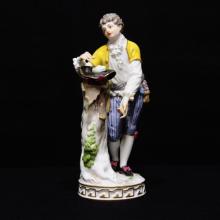 マイセン フィギュリン 庭師の情景 帽子の中に卵を集める青年 フィギュア 一級品 人形 アシエ 置物 アンティーク ボタン剣 本物保証