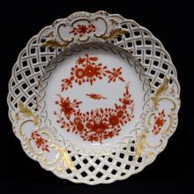 美品 マイセン インドの華 18.5cm 透かし プレート オレンジ 本物保証