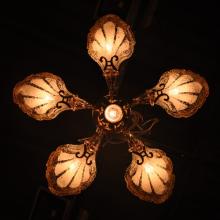 未使用 保管品 アンティーク調 5灯 + 1灯 シャンデリア ガラス シェード E26
